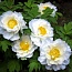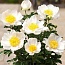 Куст компактный, высотой 50 см. Стебли очень прочные. Цветки простые белые с жёлтым центром. Срок цветения ранний.