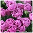 Пионовидная спрей-роза, относится к кустовым розам. Они отличаются достаточно крупными, для кустовых роз, круглыми, шарообразными бутонами, размером до 7-8 см. При этом на одном стебле может насчитываться от 5 до 15 бутонов. Бутоны окрашены в сиренево-розовый цвет. Куст среднерослый, высотой от 60 до 80 см.