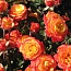 Цветы завораживающего, оранжево-красного цвета, словно яркие язычки пламени на прекрасных, зеленых стеблях. Лепестки слегка волнистые, распускаются из небольших бутонов в аккуратный, чашевидный, махровый цветок, с желтой серединкой. Цветение обильное и продолжительное. Куст компактный, невысокий, хорошо формируется. Листва насыщенно-зеленая, блестящая. Сорт используется как в одиночных посадках, так и в групповых.