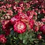 Бутоны крупные, махровые, долго сохраняют прекрасную форму. Цветение обильное, повторное. Куст компактный, с плотной матовой листвой.